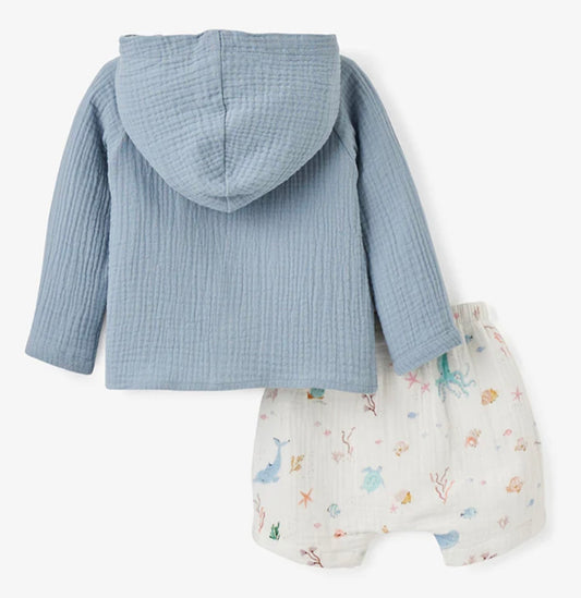 Muslin hoodie with short setVendor:Elegant babyRegular price $64.00 USDRegular priceUnit price / per-