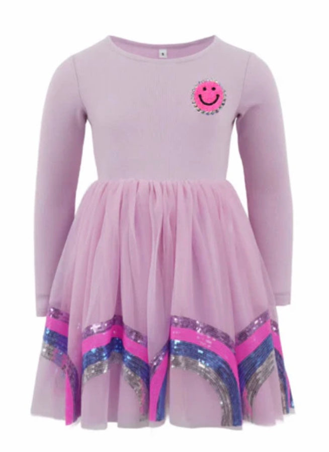 Purple smiley rainbow long sleeve dress